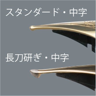 ペンを寝かせると太い線、立てると細い線が書けるという特長があり、トメ、ハネ、ハライなどが多い漢字を最も美しく筆記することができます。また、同じ字幅のスタンダードペン先と比べると太い線を書くことができます。筆圧をかけなくても滑らかな書き心地を実感できるペン先です。