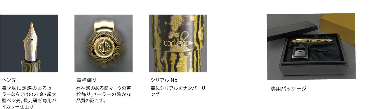 また、シリアルナンバーを刻んだ特別仕様として、同じものが世界中に二つとない限られた逸品となります。しっとりと手になじむ美しいエボナイト材の感触と唯一無二の長刀研ぎペン先のなめらかな筆記感をお楽しみください。