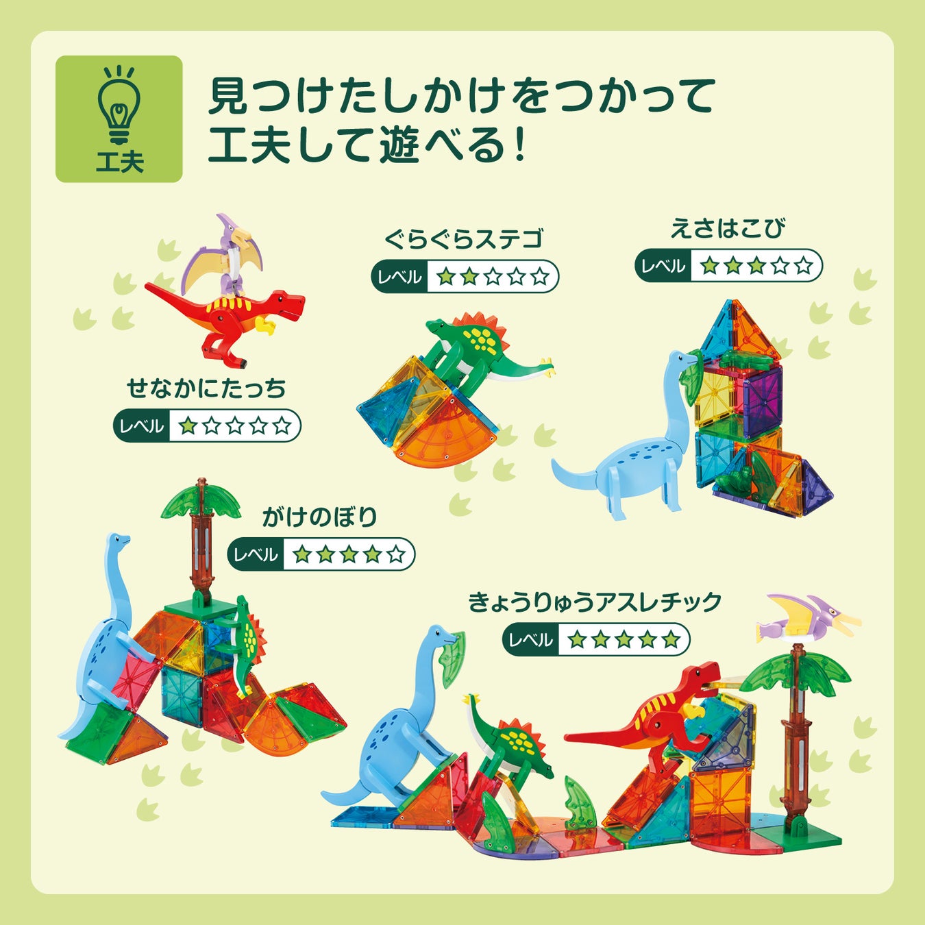 磁石の力で平面から立体へ、空間認識力を育てる知育玩具「ピタゴラス®」シリーズに、子どもたちに根強い人気の「恐竜」をテーマにした新商品が加わります。
