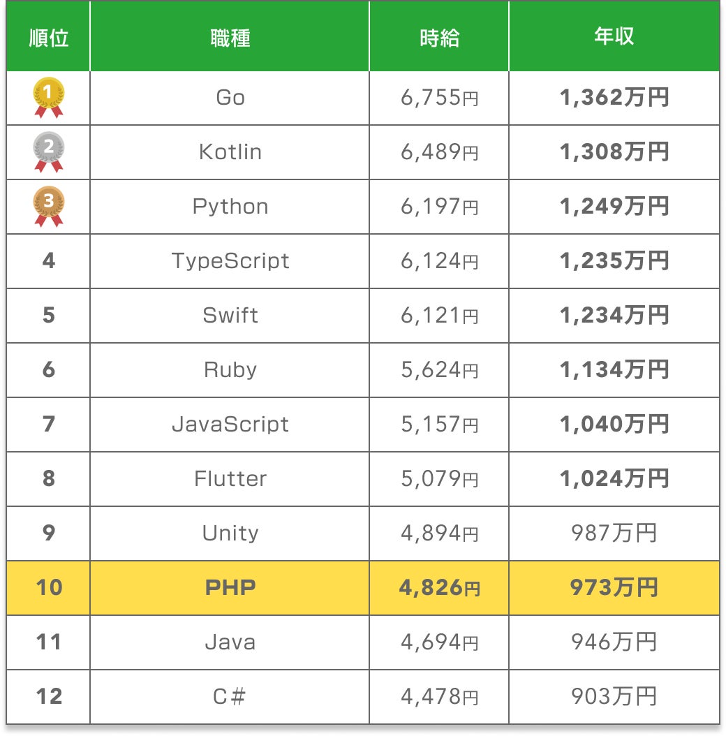 案件の豊富さと比較的安定した収入が見込めることから、PHPは依然としてエンジニアにとって魅力的な言語の一つと言えるでしょう。