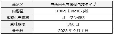 もっちりとしたおこわを簡単に作れる計量不要の『無洗米もち米個包装タイプ』9月1日(金)新発売