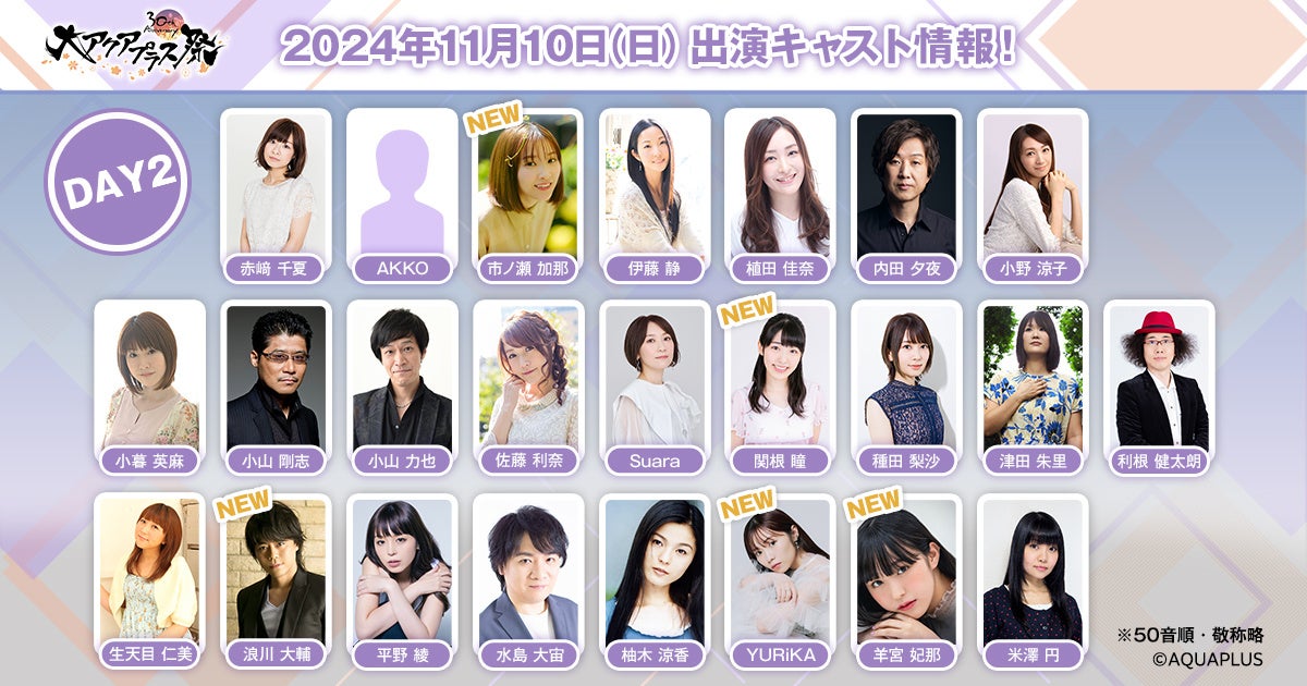 『大アクアプラス祭』に浪川大輔、佐倉綾音、中原麻衣、綾瀬有、市ノ瀬加那、羊宮妃那、関根瞳、YURiKAが追加出演!8月1日(木)18時よりチケットプレイガイド一次先行スタート