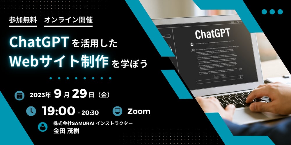 無料オンラインイベント「ChatGPTを活用したWebサイト制作を学ぼう」開催のお知らせ