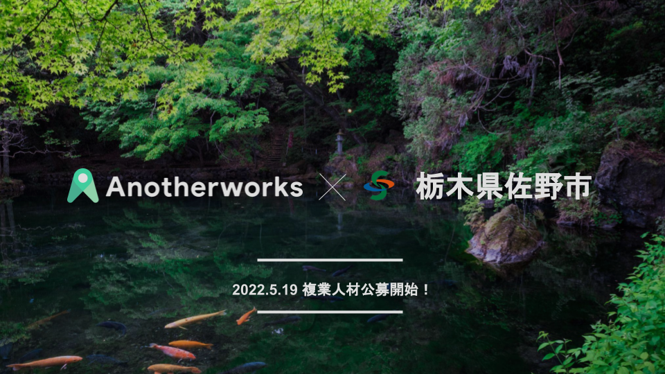 地方創生を推進する複業マッチングプラットフォーム「複業クラウド for Public」を展開する株式会社Another works(本社:東京都渋谷区、代表取締役:大林 尚朝)は、2022年5月19日、栃木県佐野市と連携協定を締結し、行政へ複業人材を登用する実証実験を開始しました。あわせて本日より、複業人材の募集を4職種で開始いたします。