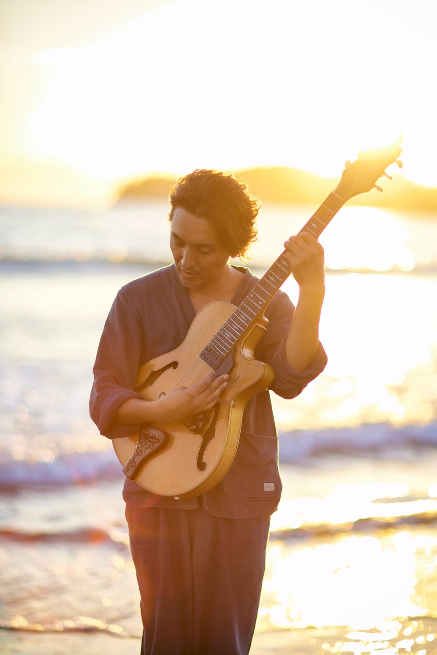 秋田県出身、14歳でギターを始める。1999年ギブソンジャズギターコンテスト優勝。2001年にSONY MUSICよりデビュー、10年間在籍。現在までにSONY他から10枚のリーダー作品をリリース。2004年、リチャード・ボナ (ba)、アリ・ホニッグ(dr)をフィーチャーしたトリオアルバム"Three Primary Colors"をNyで録音。2010年、フレンチカリビアンのミュージシャン達とレコーディングした「Jam Ka」発売。グアドループの民族音楽グオッカの太鼓(ka)がフィーチャーされたこの作品で独自の世界観を展開。2016年、Flyway LABEL を設立。第一弾作品としてパリで録音された「Jam Ka」の続編、「Jam Ka Deux」をリリース。この作品をきっかけにParisやMunich のジャズクラブ、Martinique Jazz festivalに出演。2019年、Jam Ka Deux(17年)ツアー直後のスタジオセッションを収録したアルバム"Jam Ka 2.5"をリリース。グォッカの本拠地Guadeloupeで行われた"Festival Eritaj"に出演。ジャズをベースに様々な国を旅して得た影響、経験を音楽に採り入れながら、世界を音で繋ぐ創作活動を続けるギタリスト。エレキギターの他にアコースティックギターも使用する。初のソロギター作品『Your Smile』を2023.9.20にリリース。