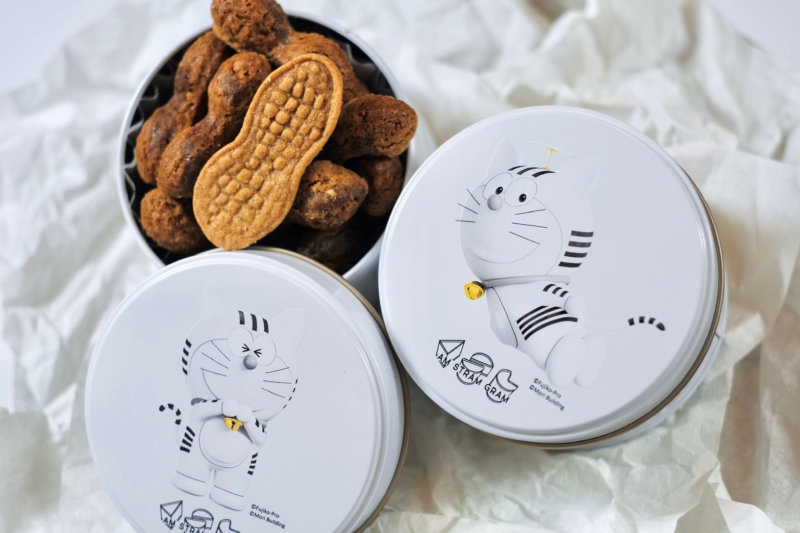 AM STRAM GRAM で人気のピーナッツバタークッキーが虎ノ門ヒルズ限定フレーバーで登場。トラのもんをデザ インした可愛らしい缶のデザインは全2種類ご用意しています。