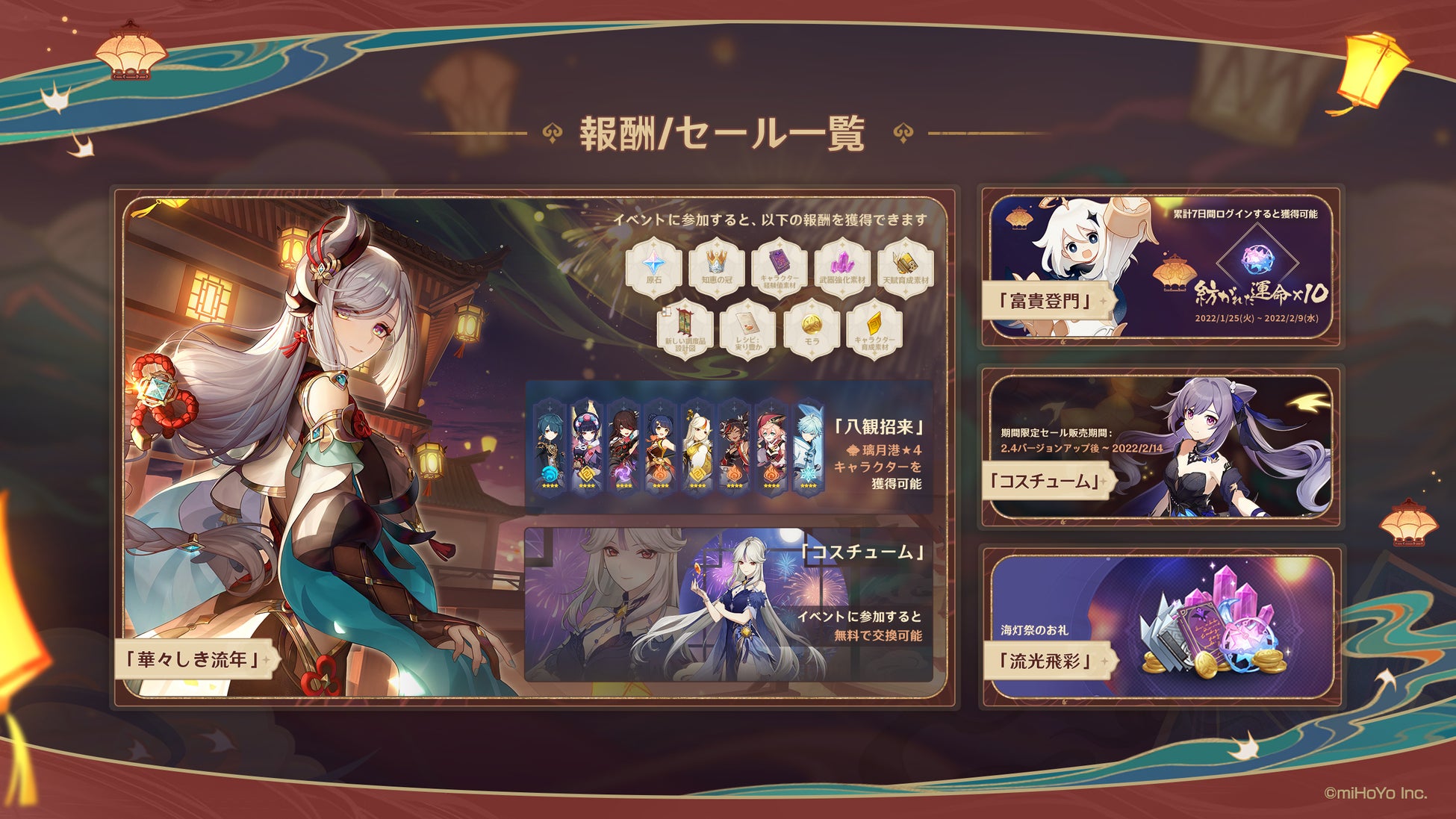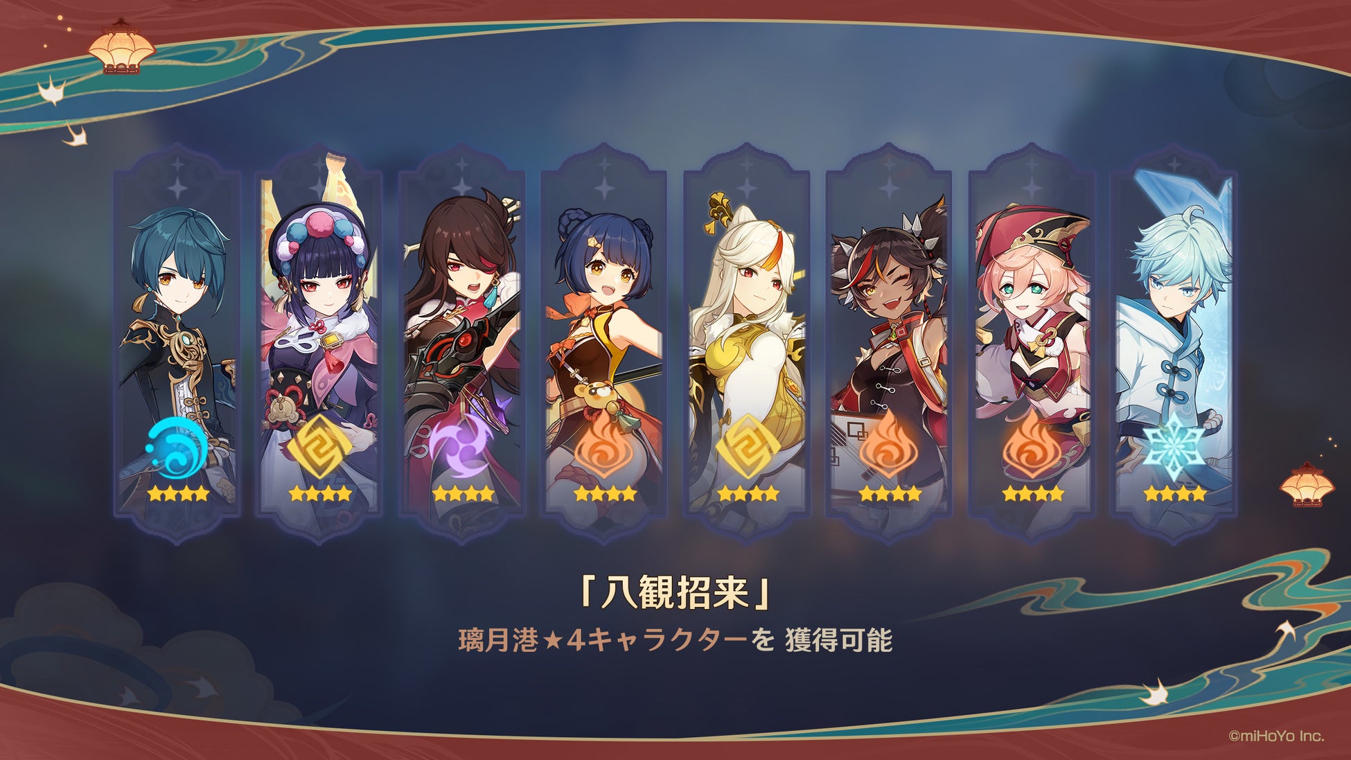 イベントに参加すると、璃月港★4キャラクター8名の内、1名を獲得することができ、その他にも豪華な報酬が用意されています。