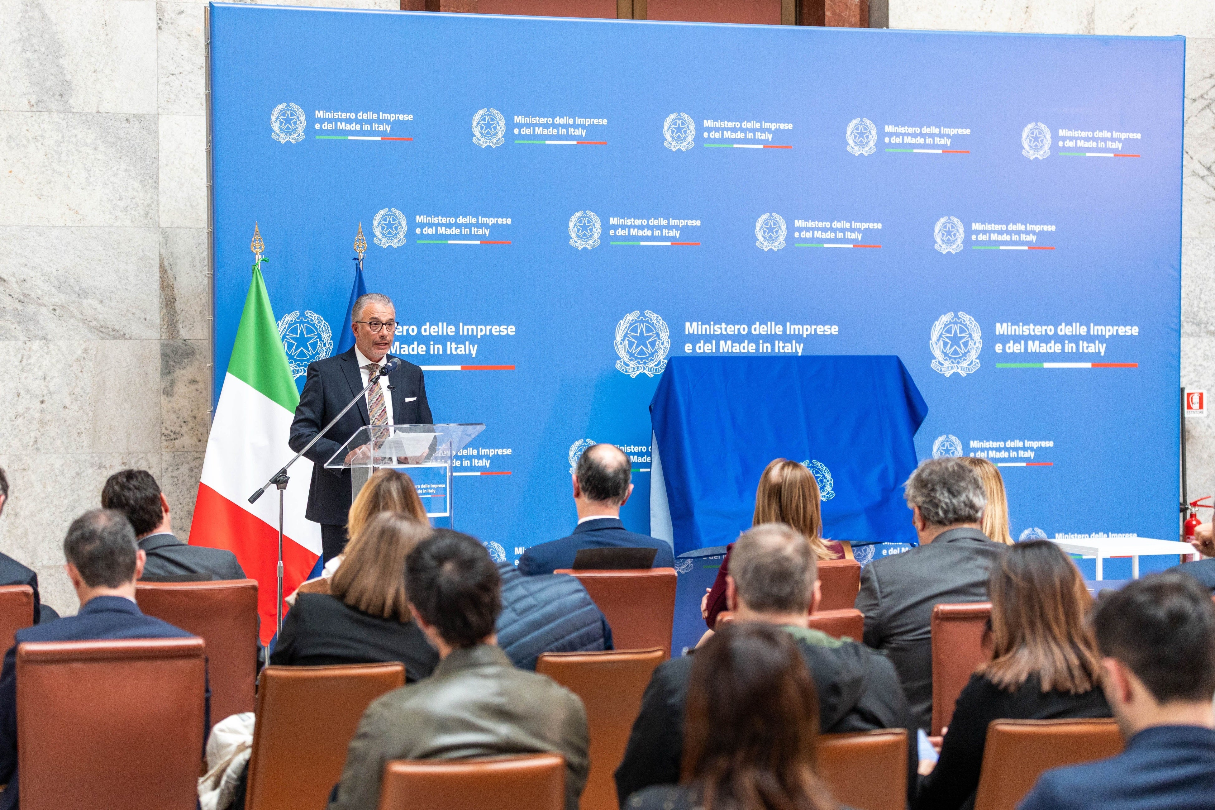 本イベントは、企業・メイドインイタリー省本部であるパラッツォ・ピアチェンティーニ内のサラ・デッリ・アラッツィにて開催され、首席補佐官フェデリコ・アイヒベルク氏、郵趣担当国務次官ファウスタ・ベルガモット氏、参加ブランドの代表団、ならびにマセラティCOO兼アルファ ロメオCEOサント・フィチーリが出席しました。