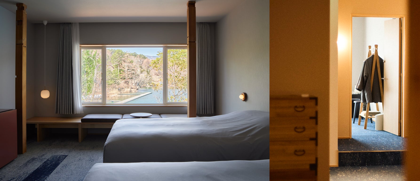 全7室のうち6室が湖に面しており、ひと部屋ずつ形やスタイルが異なります。八ヶ岳の贅沢な眺めを独り占めできるグランドスイートルーム(定員4名)や、窓辺のベンチや浴室から景色の変化を感じられるレイクフロントツイン(定員2名)、仕事や創作活動にぴったりのクリエイターズ・ツイン(定員2名)など。詳細は公式サイトをご覧ください。