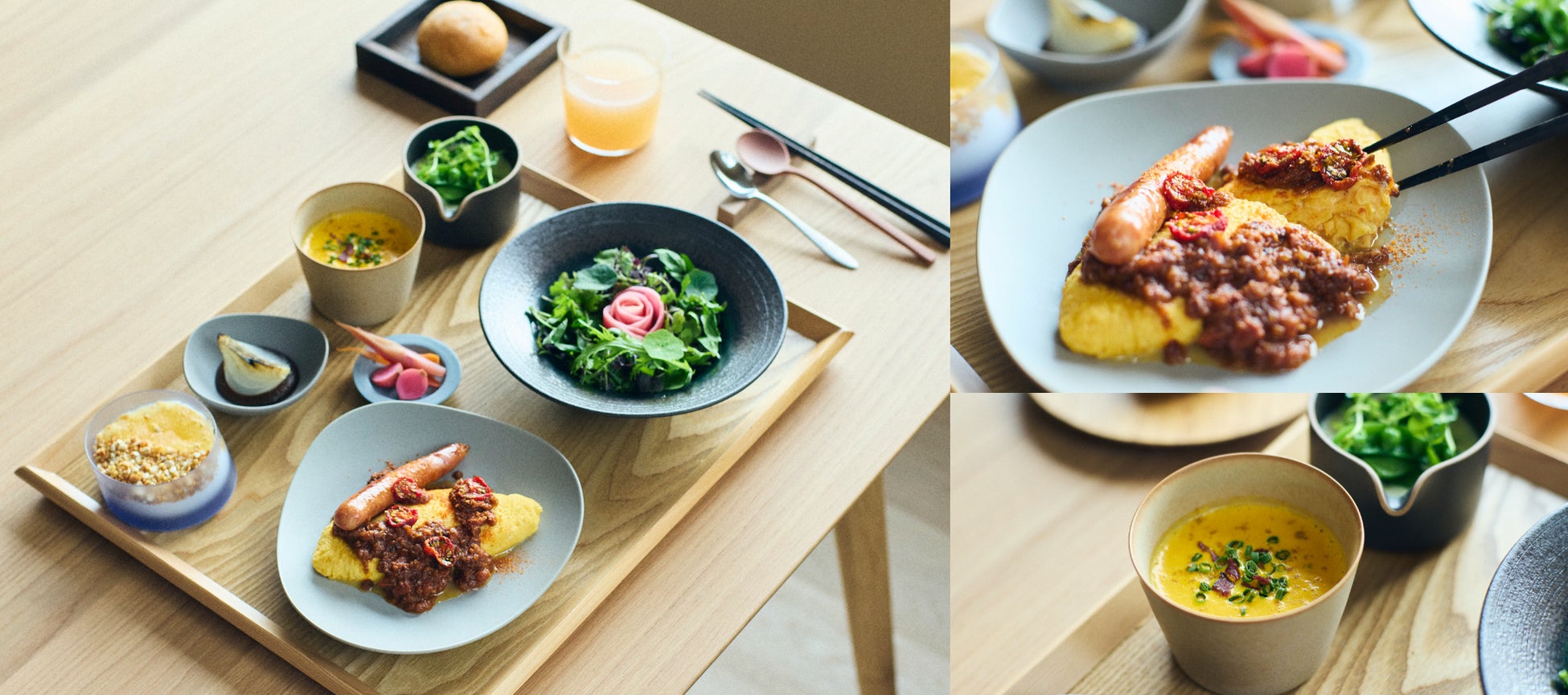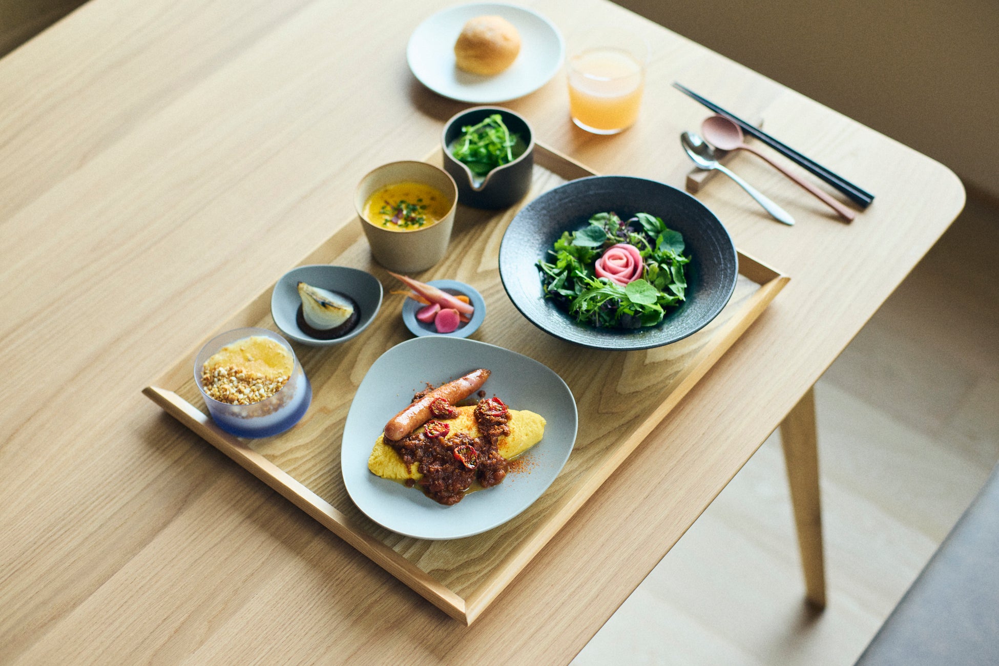 OTOの朝食は、フレッシュで優しい味わいのモーニングプレート。1日目とは違う表情を見せる湖面を眺めながら、穏やかな朝を迎えます。