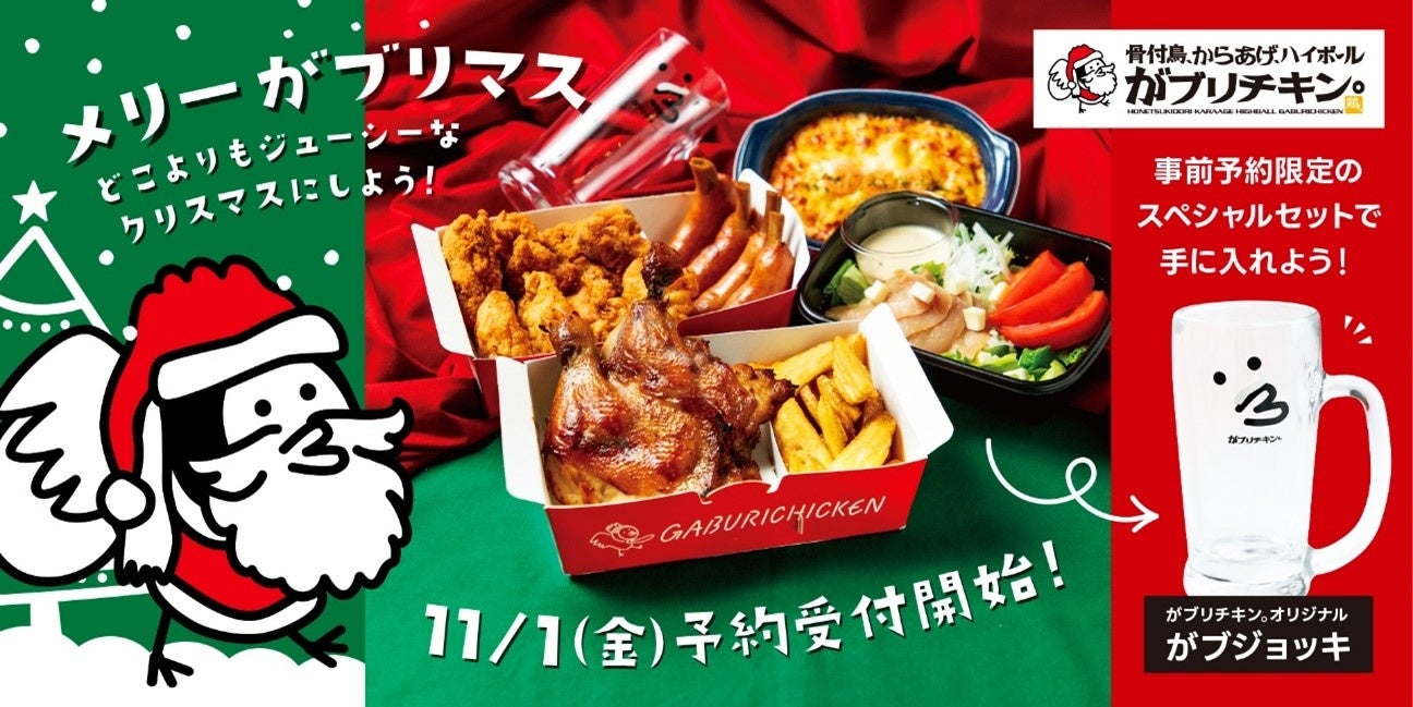 特別な日の食卓にぴったりな、がブリチキン。のスペシャルをぎゅっと詰め込みました。予約特典として、「がブジョッキ」が付いてきます。12月12日(木)までの事前予約限定商品となります。