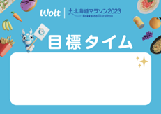 ゼッケン配布が行われるEXPOの開催期間中、およびレース当日にWoltのブースを出展いたします。ブースではレースの目標タイムを掲げられるボードを用意しており、記入して写真を撮って頂き、レース完走後に再度お立ち寄り頂いた方には、うちわ等のWoltオリジナルグッズをプレゼントいたします。(予定数量に達し次第終了。)