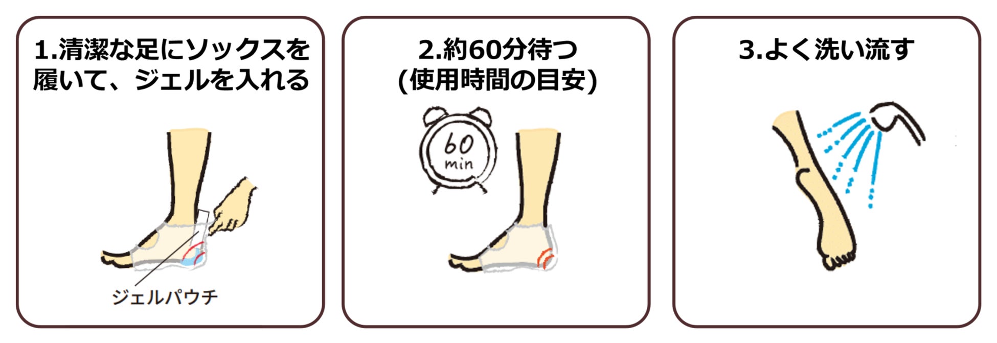 ■かかと用ソックスにジェルを流して、浸して、洗い流すだけ!