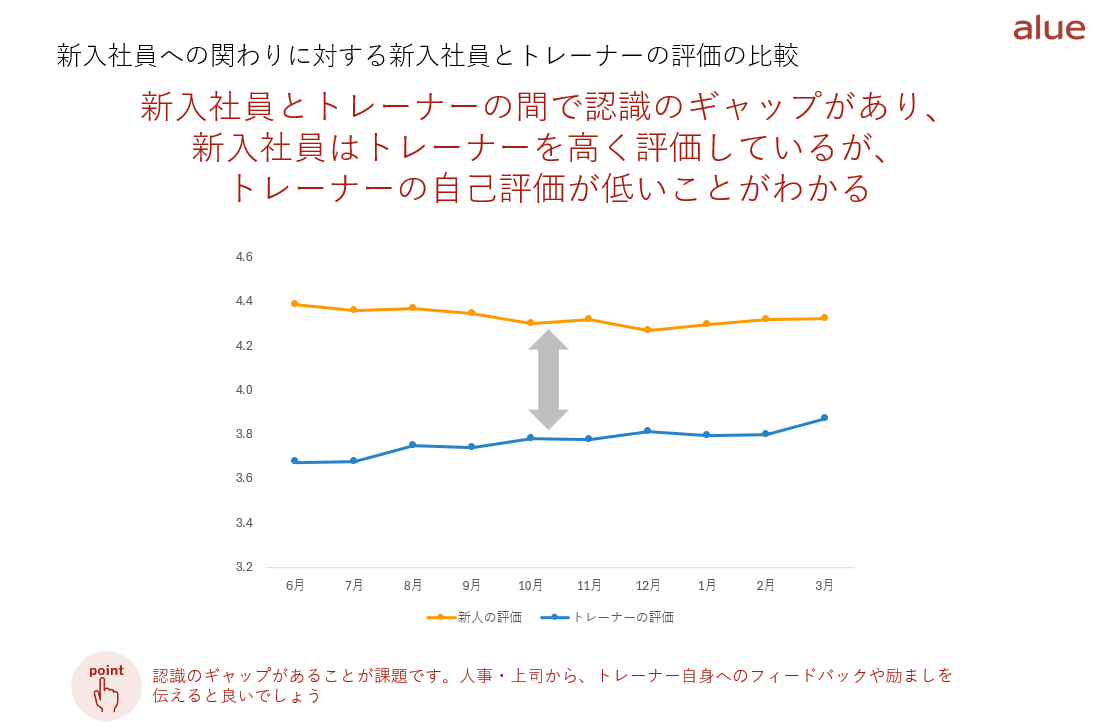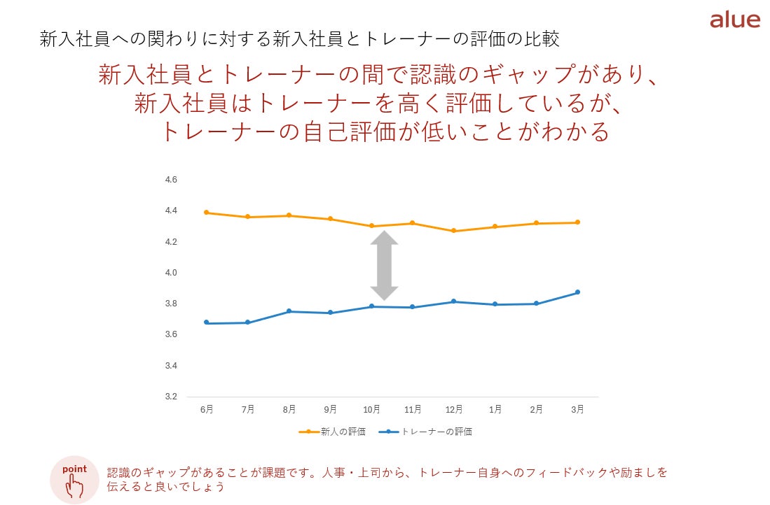 ・新入社員はトレーナーを高く評価しているが、トレーナーの自己評価が低い