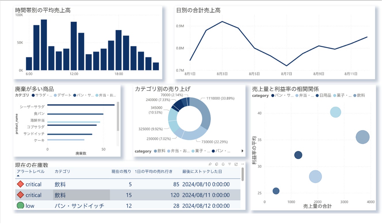 AIカメラなどのリアルタイムデータをMicrosoft Fabric(データ分析プラットフォーム)で統合管理し、在庫管理や棚割り、発注業務まで一貫して効率化します。