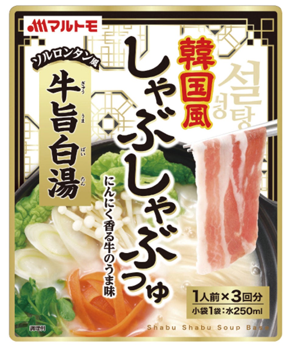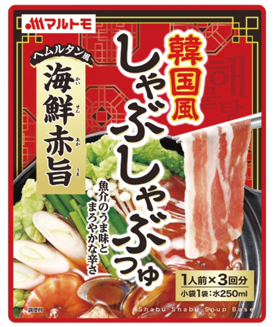 かつお節・だしと、海洋資源を通じて健康と食文化の発展に貢献するマルトモ株式会社(社長:今井均 本社:愛媛県伊予市)は、 韓国料理で人気のヘムルタン(海鮮スープ)、ソルロンタン(牛骨スープ)をしゃぶしゃぶ仕立てでいただく鍋メニュー「韓国風しゃぶしゃぶつゆ 海鮮赤旨」「韓国風しゃぶしゃぶつゆ 牛旨白湯」を、2023年9月1日より新発売します。