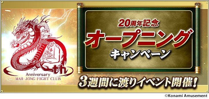株式会社コナミアミューズメントは、オンライン対戦麻雀ゲーム「麻雀格闘倶楽部(マージャンファイトクラブ)」シリーズが、2022年3月に20周年を迎えたことをお知らせします。