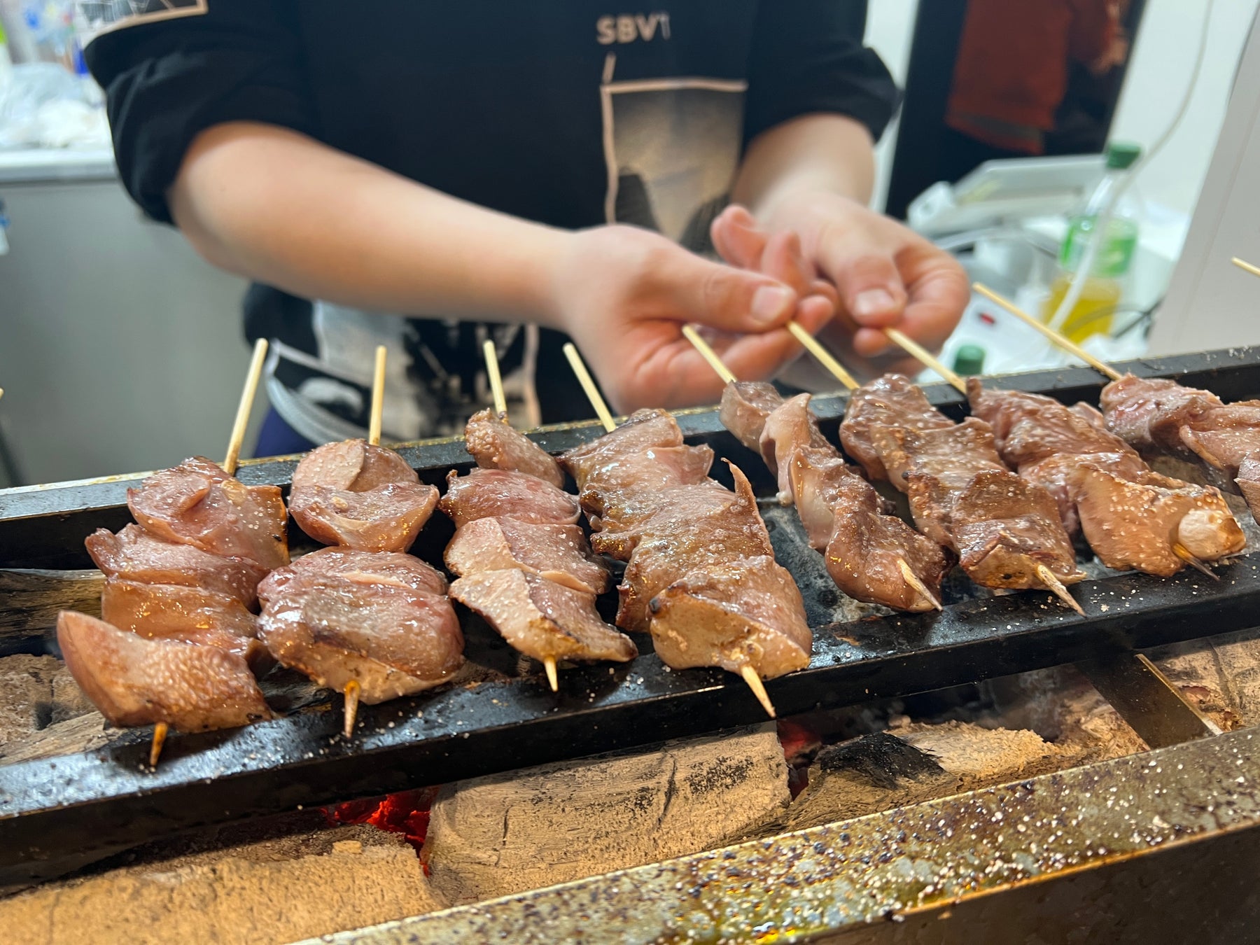 炭火焼きの香ばしさと、新鮮な豚もつのプリプリ感がたまらない。