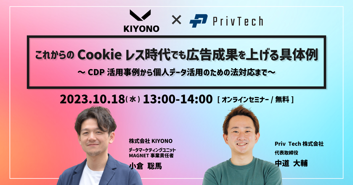 KIYONOと共催で、これからのデジタルマーケティングに必要なデータ利活用とプライバシー対応を解説する無料オンラインセミナーの開催が決定いたしました。お誘い合わせの上、奮ってご参加ください。
