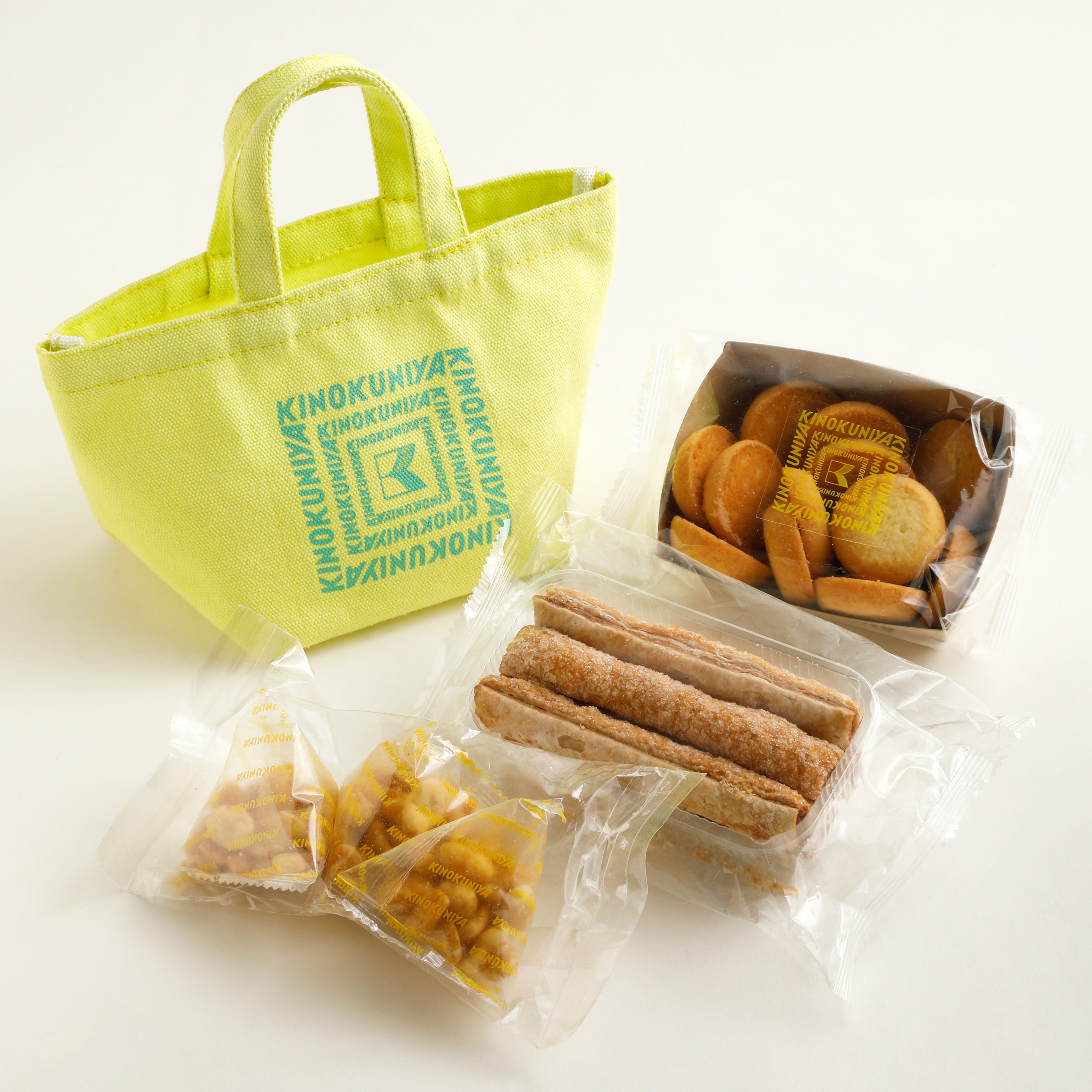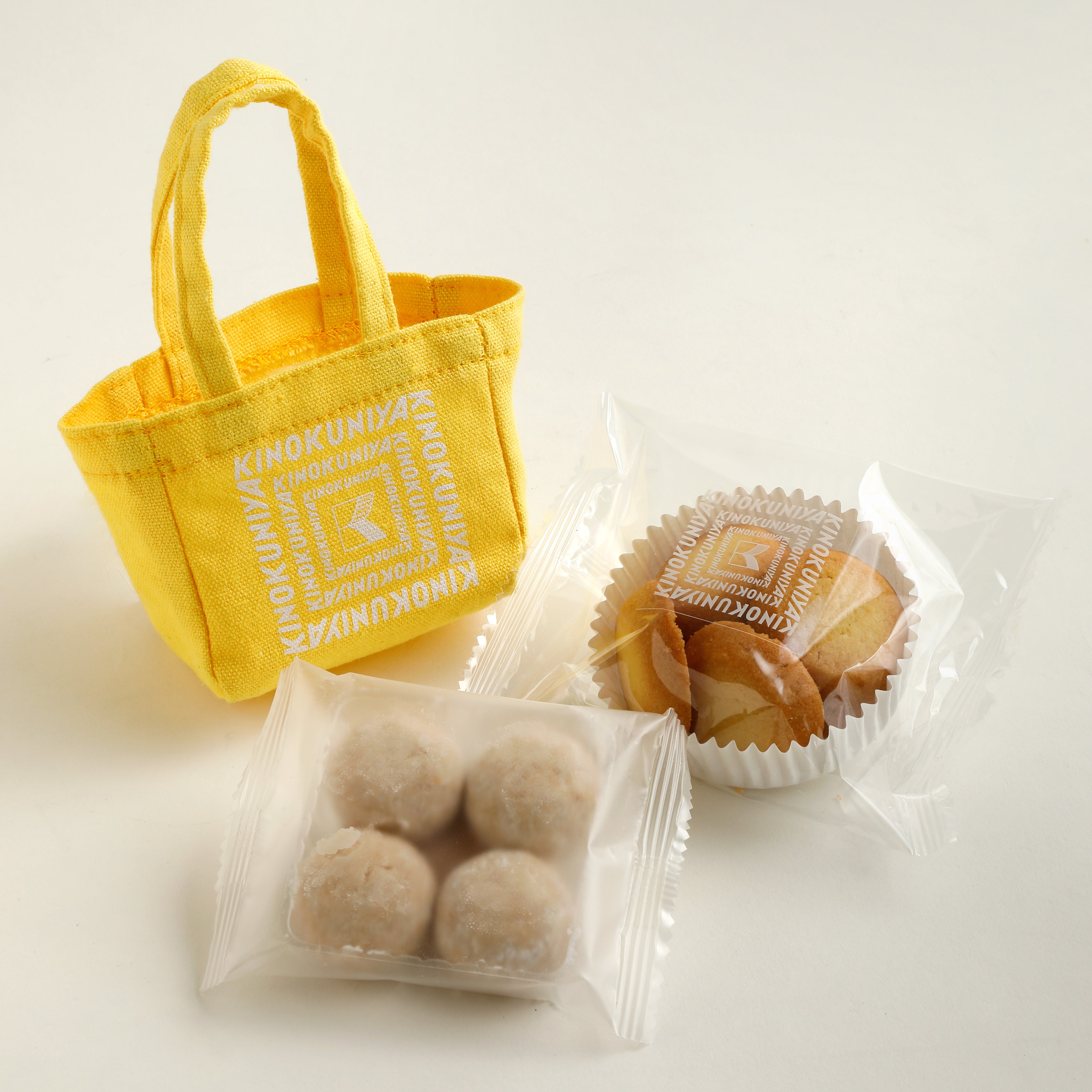 手のひらサイズのバッグにレモン味の焼菓子とスナックが入った「サマーバッグ(レモン)」とミニミニサイズのバッグに人気の焼菓子が入った「カラーミニスイーツバッグ(イエロー)」の2種類をご用意しました。