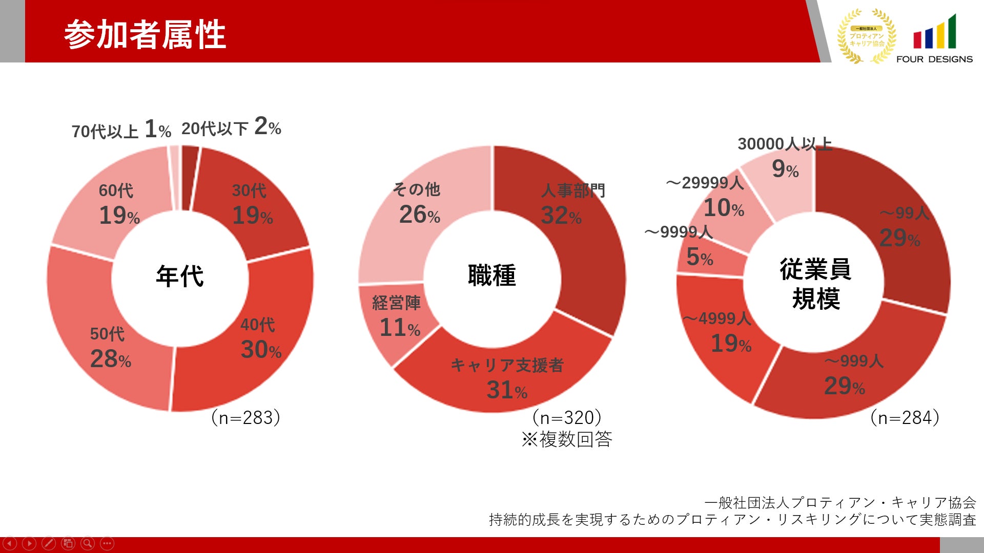 2023年6月7日に「持続的成長を実現するためのプロティアン・リスキリングについて」のイベントを実施しました。イベント応募参加者・メールマガジンでのアンケート回答者を対象にアンケートを実施しています。