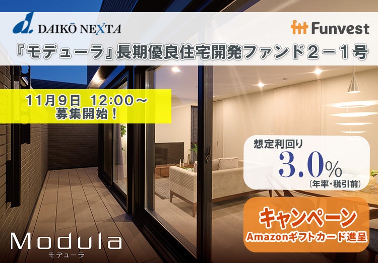 貸付型クラウドファンディング「Funvest」11/9より新ファンド「大興ネクスタ 『モデューラ』長期優良住宅開発ファンド2-1号」の募集開始