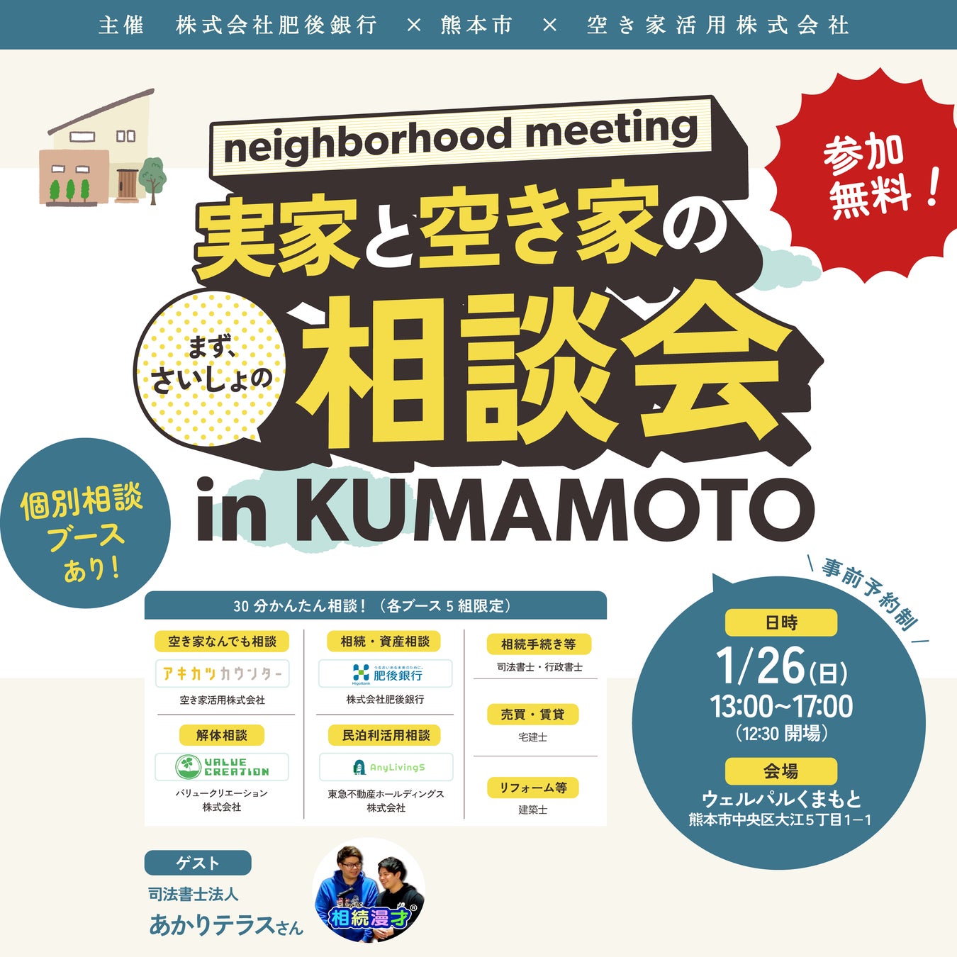 肥後銀行、熊本市、空き家活用株式会社が主催する 「実家と空き家の相談会 in KUMAMOTO」 を1月26日(日)に開催します!
