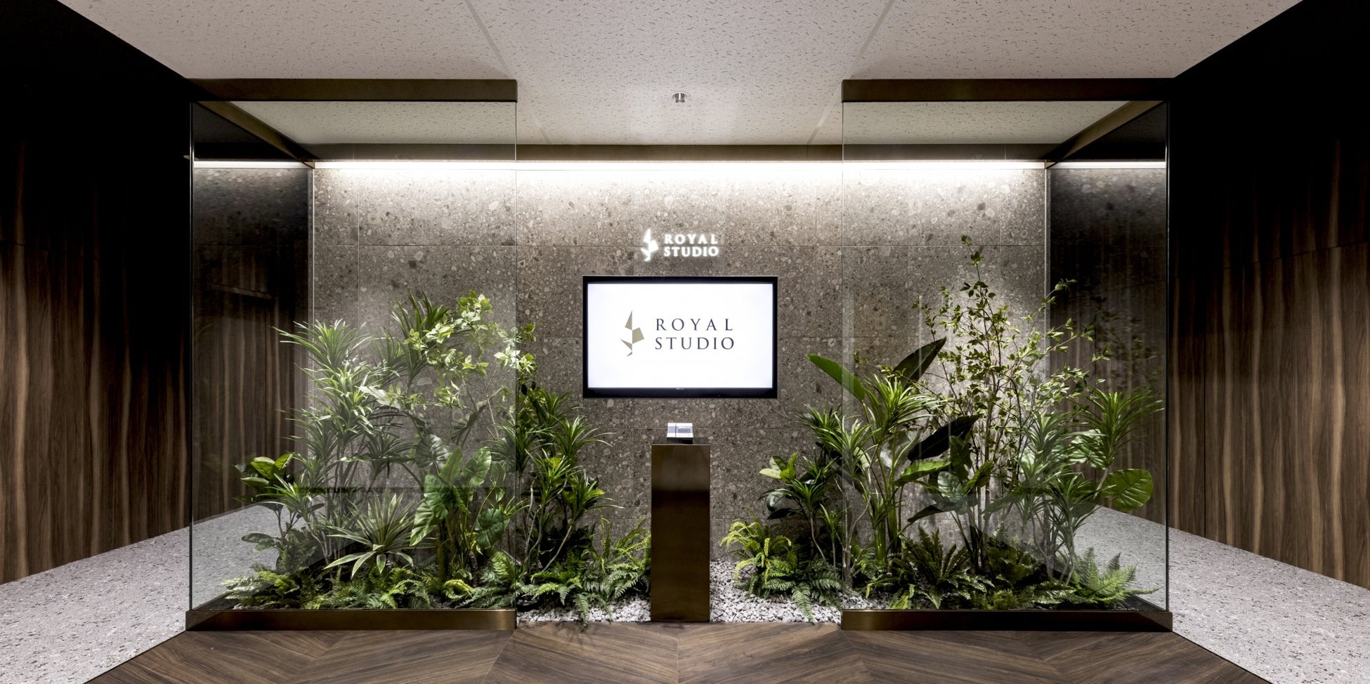 - 「ロイヤルスタジオ」というコンセプトのもとつくられたエントランスや空間が個性的。特にエントランスはシンメトリーな見せ方をしていて上品で洗練された印象。
