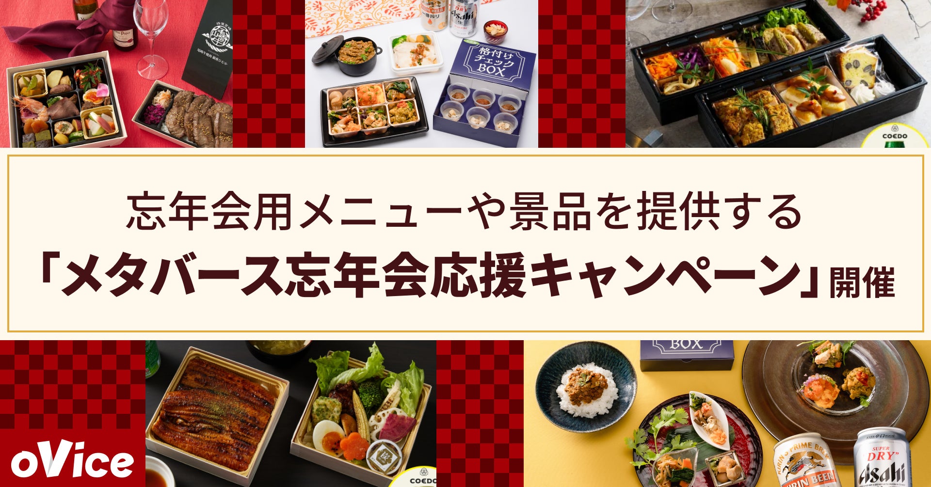 oVice、感染症対策や多拠点参加ができる「メタバース忘年会」。忘年会用メニューやゲーム景品を提供する「メタバース忘年会応援キャンペーン」開催