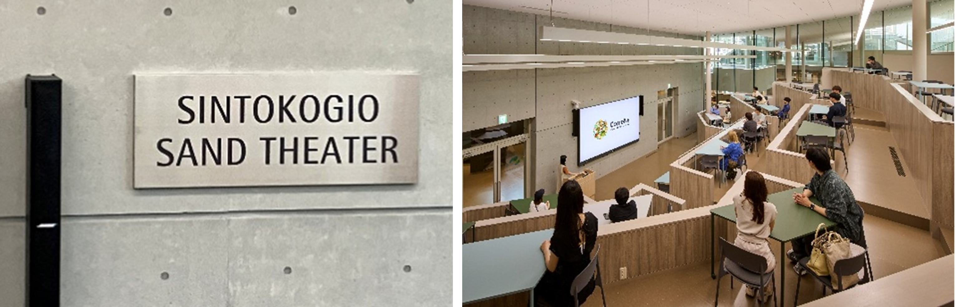 今回の対象施設は名古屋大学駅に直結にする共創の拠点「ComoNe」内の「SAND THEATER」で、新名称は「SINTOKOGIO SAND THEATER」です。「SAND(砂)」には、自由に形を変えられるSAND(砂)といった意味が込められており、当社の祖業である鋳造と親和性があり、この度の名称決定となりました。今後、さまざまな形式で開催される講座や講演が予定されています。