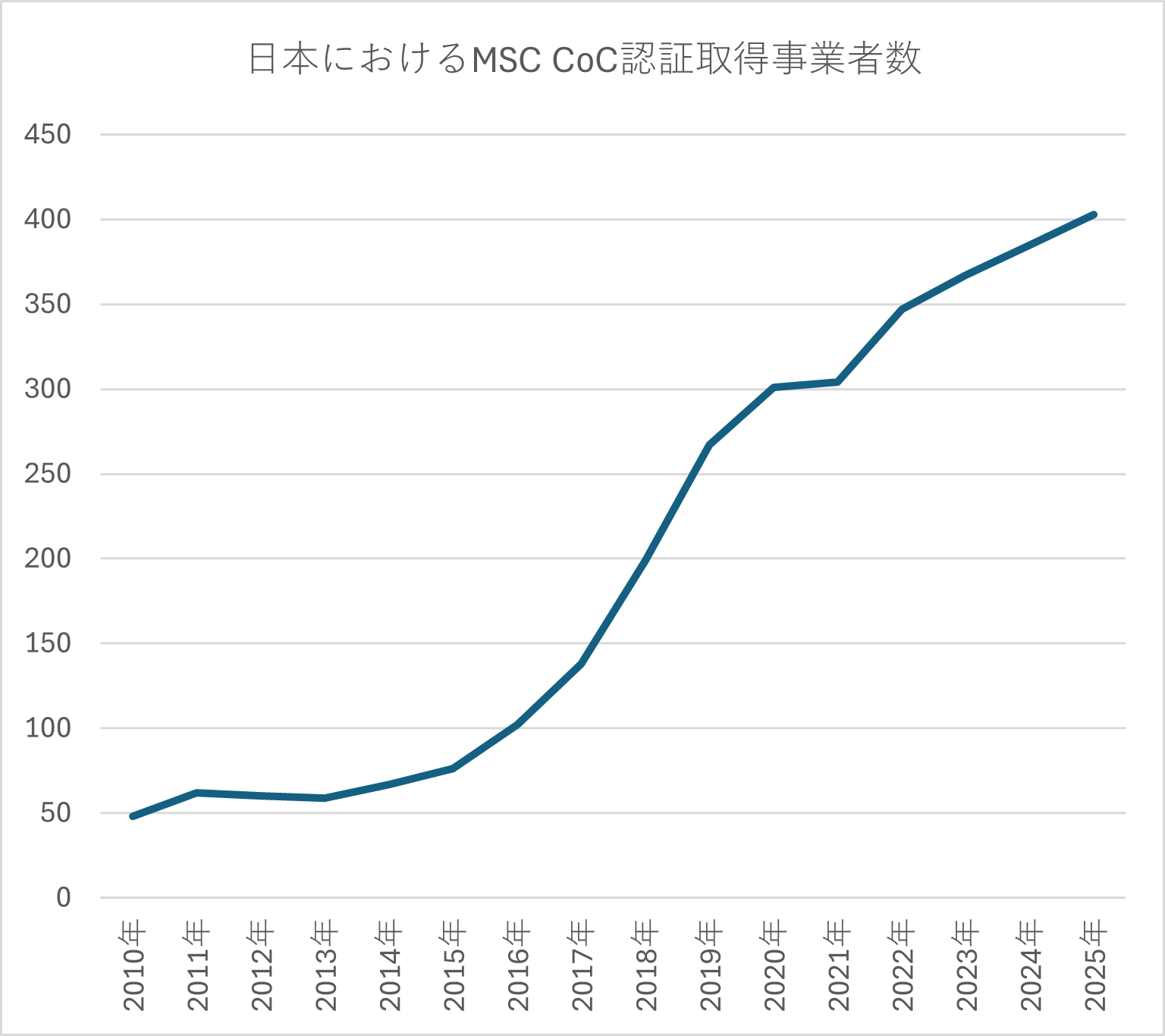 MSC認証水産物を扱うためのMSC CoC認証の取得事業者数が日本国内で400を突破 中国、アメリカに次ぐ世界3位の水準に