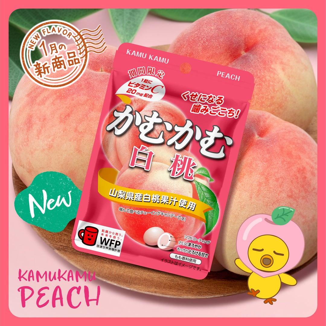 【かむかむ】山梨県産白桃果汁使用!噛めば噛むほど白桃のジュ―シーな味わいが口に広がる!