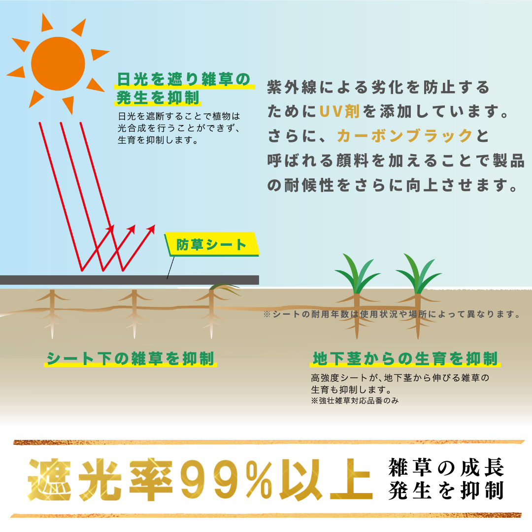 ★遮光率99%以上!雑草の成長・発生を抑制