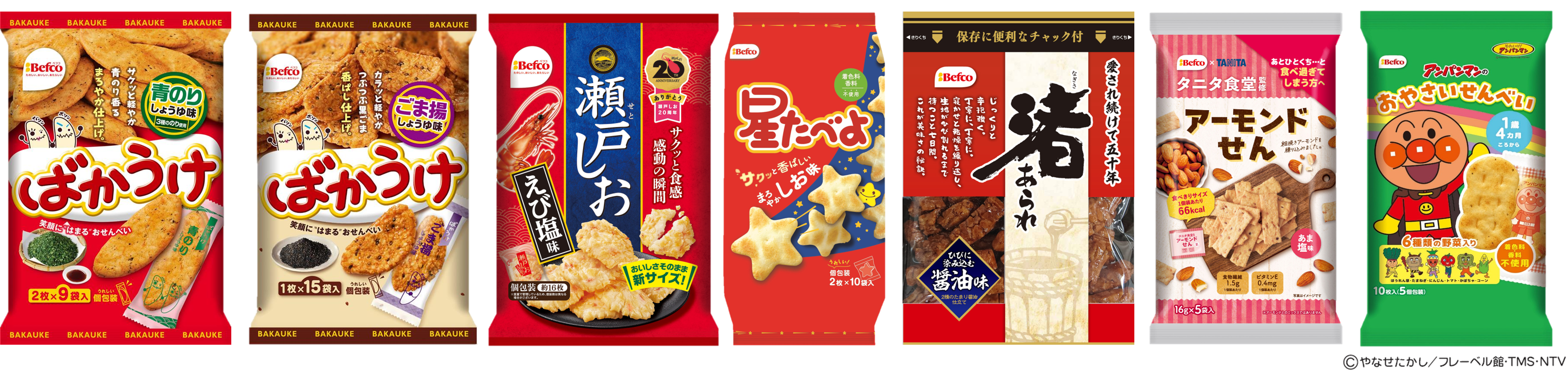 主要商品 「ばかうけ」「瀬戸しお」「星たべよ」など