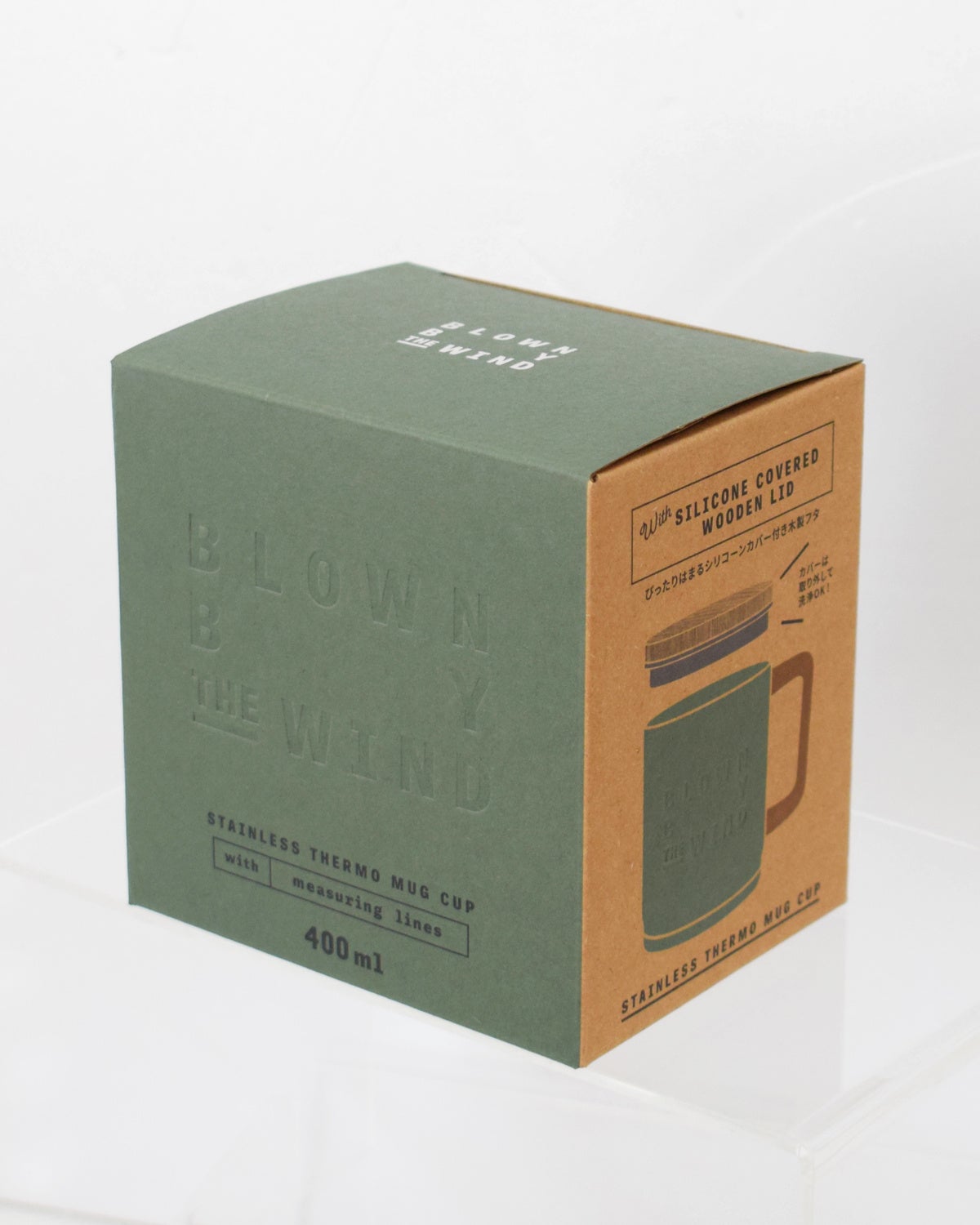 ■天然木のフタの風合いとエンボスロゴの組み合わせが温かな印象。