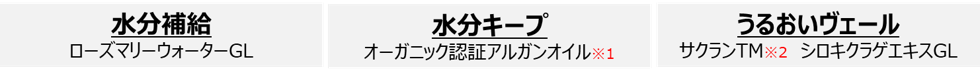カメリアオイルGL(保湿)※6を配合し、美しいツヤを与えます。