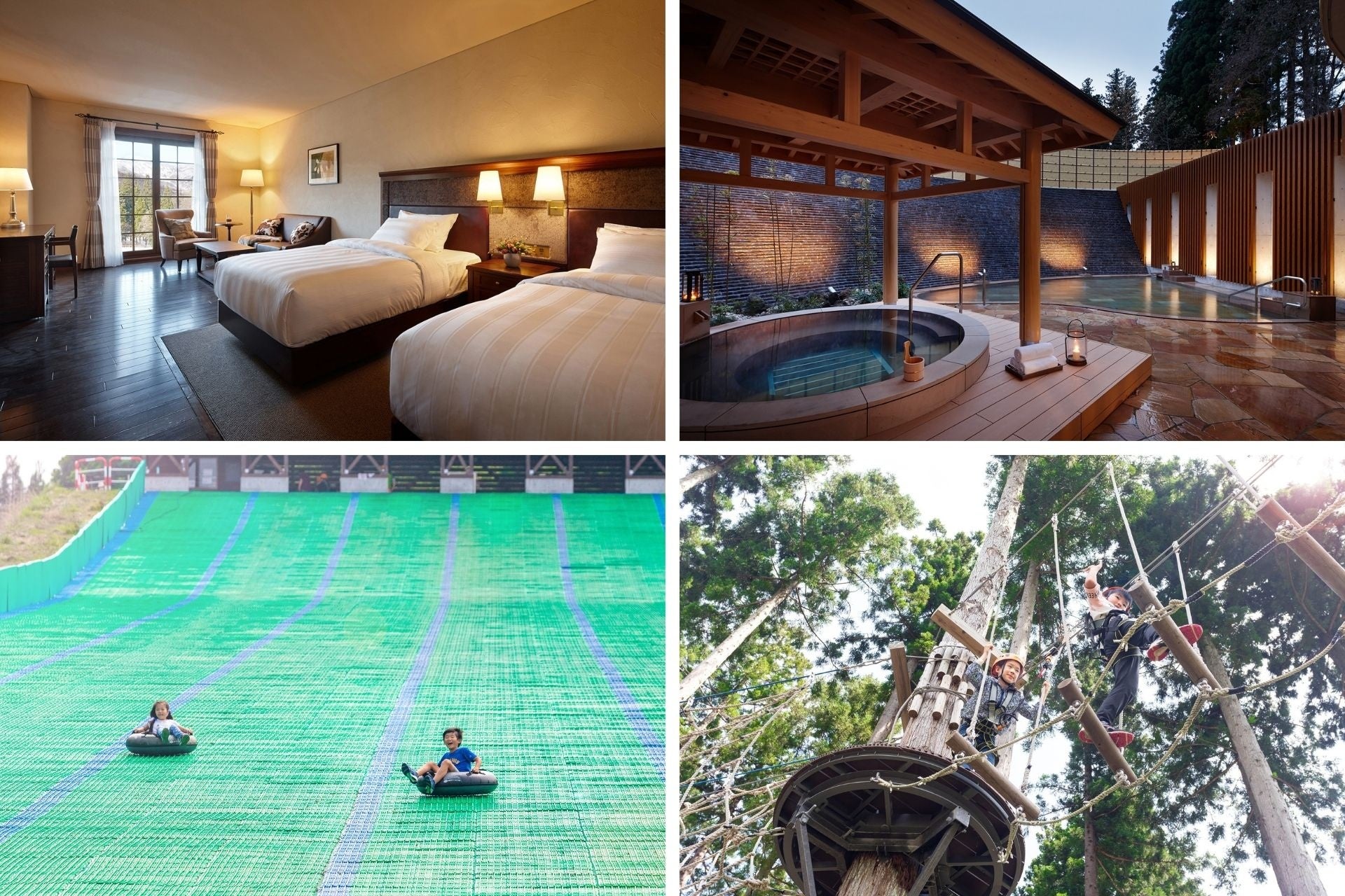 敷地内では、全14コースを誇るスキー場をはじめ、アジア最大級の全長1,501mのジップツアー、ツリーアドベンチャー、スパ、プール、レストラン、カフェ、ファンクションルームなど、多彩なアクティビティと施設が充実しています。グリーンシーズンには新緑と澄んだ空気に包まれながら、雄大な山並みをお楽しみいただけます。また、天然温泉「星空温泉」では、満天の星を眺めながらゆったりとしたひと時をお過ごしいただけます。日常を離れ、自然豊かなリゾートで心安らぐ特別な時間をお過ごしください。