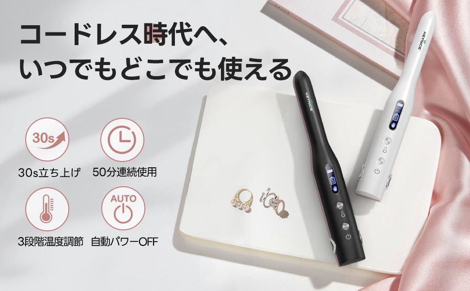 「最大50%割引!!アマゾン5月セール開催中」KEYNICEコードレスヘアアイロン ストレート カール 2way LCD 三段階温度設定 短髪を手軽に KN-2606 KN-2609