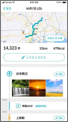また、行動記録などの社会参加の状態は地図やタイムラインでも確認することができ、写真やメモを紐づけることで日記のように使うことも可能です。
