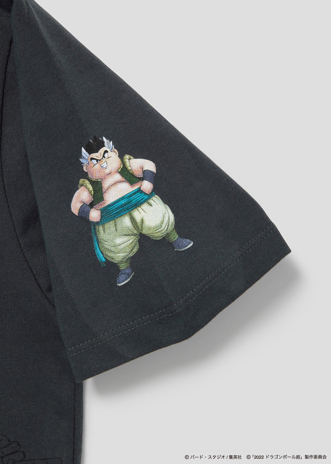 悟飯、ピッコロ、パンなど今作のメインキャラクターたちが集合した豪華なデザインをバックプリントに。胸元のレッドリボン軍のマークがポイント。