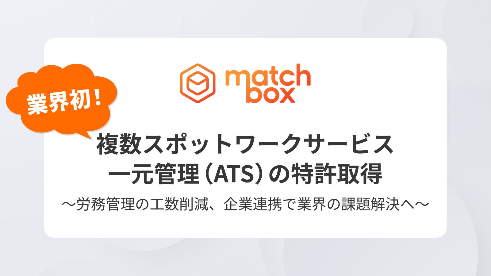 株式会社Matchbox Technologies(マッチボックステクノロジーズ 所在地:新潟県新潟市、代表取締役:佐藤 洋彰、以下当社)は、2025年5月に「複数のスポットワークサービスにまたがる求人情報の一元管理技術(ATS:採用管理システム)」に関する特許を取得しました。