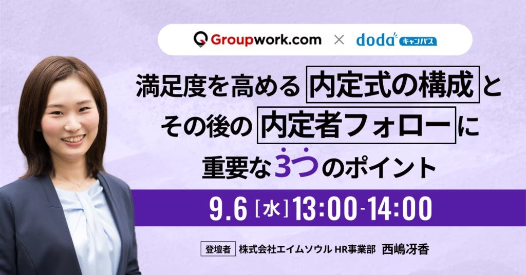 ≪9/6(水)開催≫ dodaキャンパス主催WEBセミナー“満足度を高める内定式の構成とその後の内定者フォローに重要な3つのポイント”にエイムソウルが登壇
