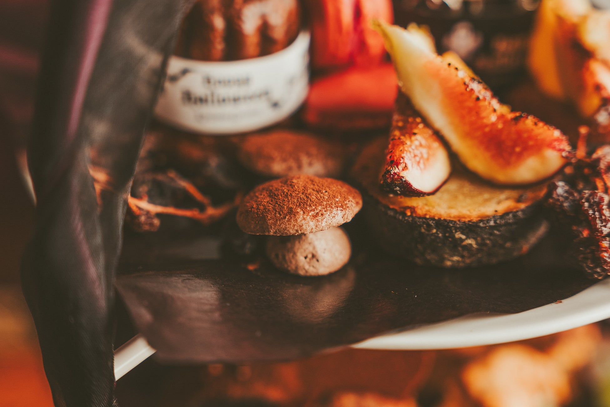 「黒い森」をイメージし、秋らしい果物を使用しました。黒無花果などダークな見た目の果物をセレクトしました。多種多様な果物を使うことで贅沢なヴェルサイユでのハロウィンパーティらしさを表現しました。