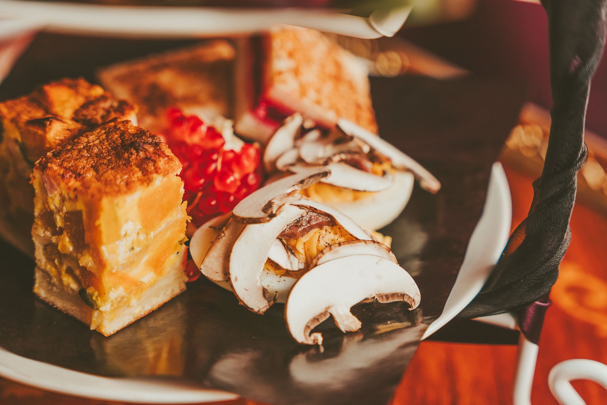 卵とマヨネーズのシンプルですが王道のコンビネーションを楽しめます。アンチョビとブラウンマッシュルームを使った見た目もインパクトのある一品です。