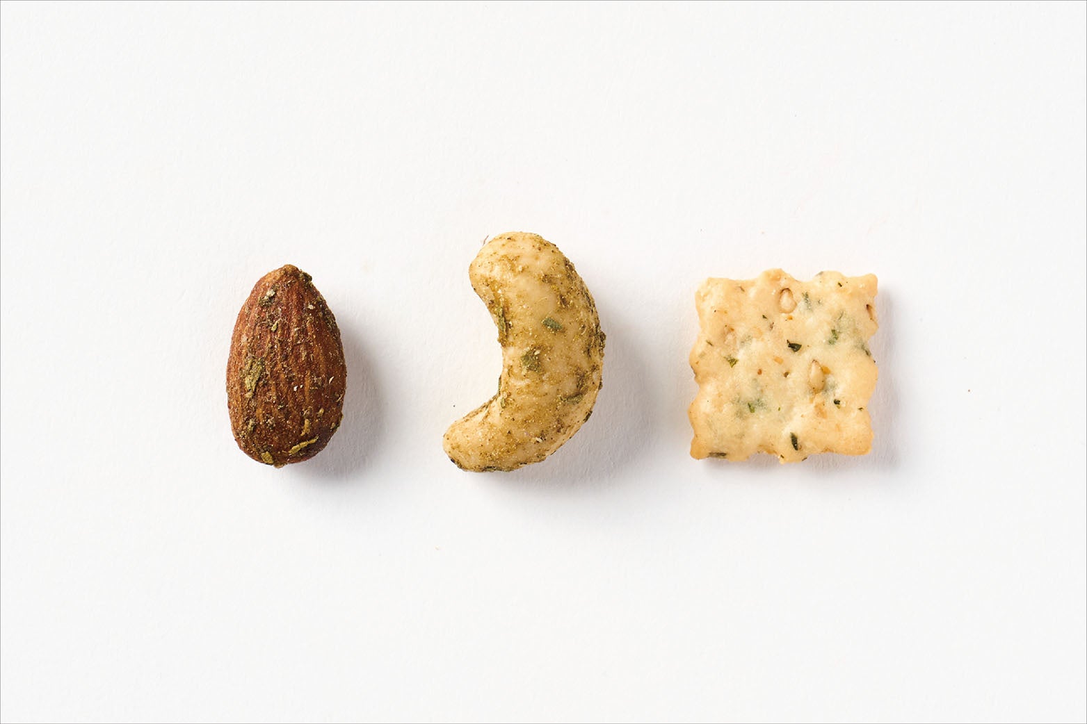 セサミチップスと、7種のハーブで味付けしたナッツのリッチな香りが特長のお菓子