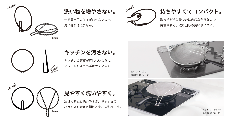 ぜひ進化した「立てられるオイルスクリーン」をお試しください。