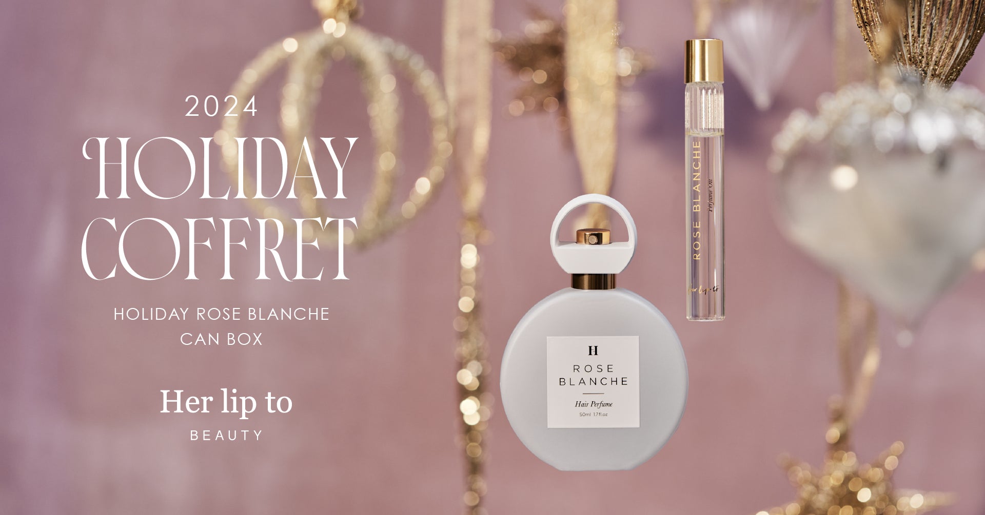 先日発売したホリデーコフレ第一弾は、冬の寒い季節に特に纏いたくなる“PINK SUEDE”の香りのセットをご用意いたしました。Her lip to BEAUTYの中でも特にご好評いただいているフレグランスアイテムから、第二弾は日々の新たなチャプターを輝かせる優しい光に包まれたような“ROSE BLANCHE”の香りのセットが登場いたします。