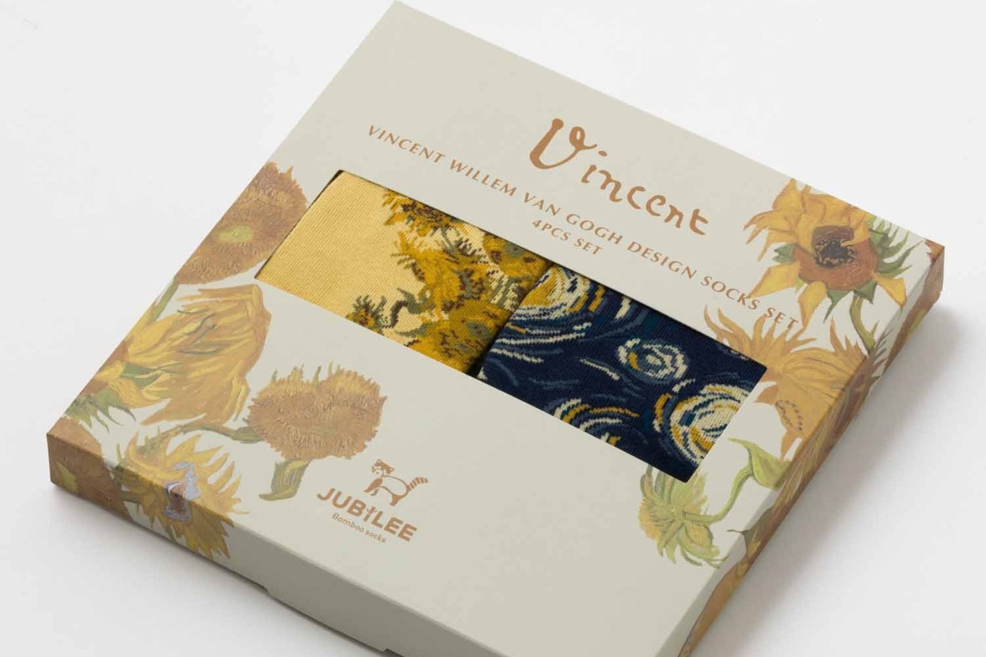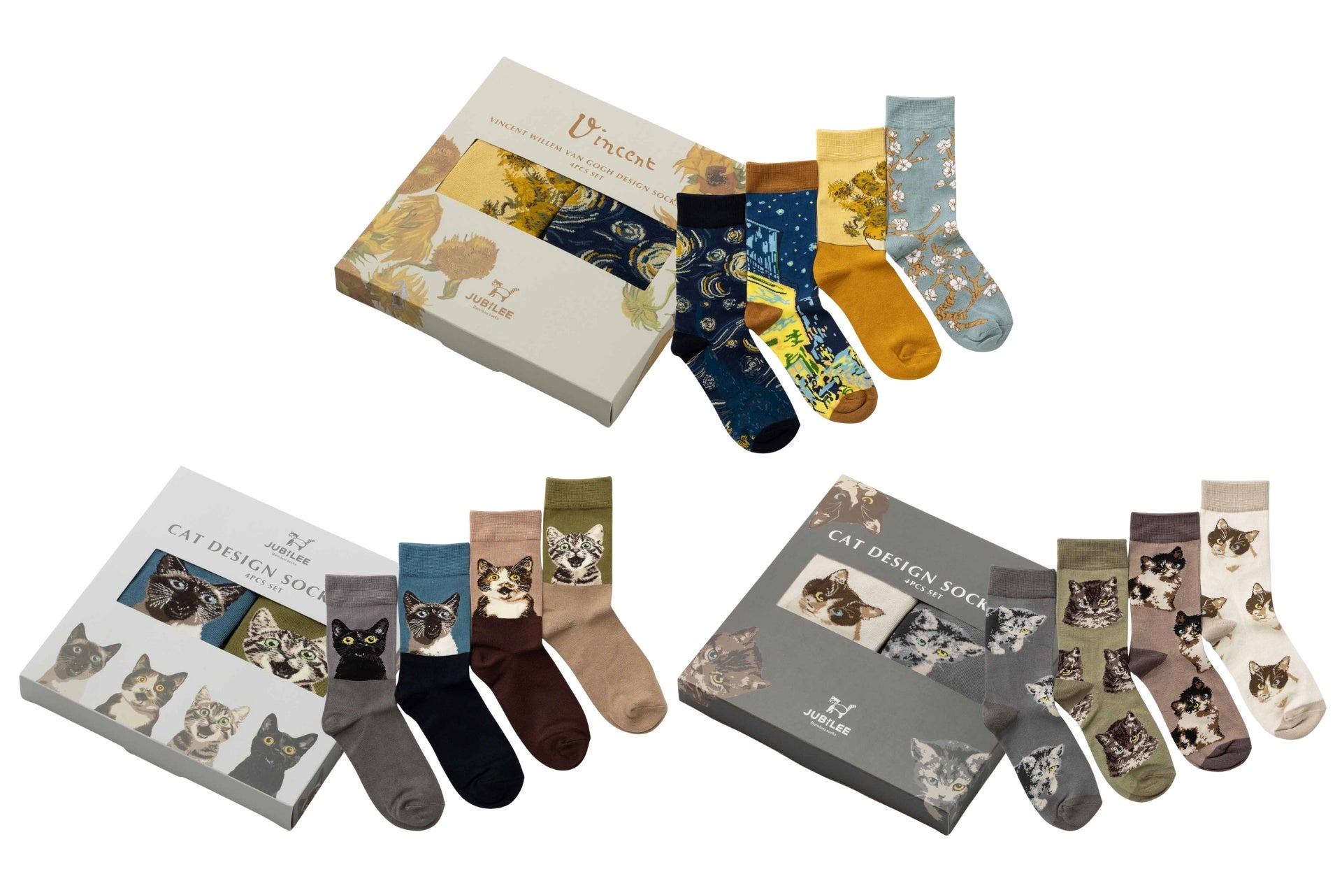 ゴッホの名作や表情豊かな子猫が愛らしい、ソックス4点ギフトBOXに新柄追加。