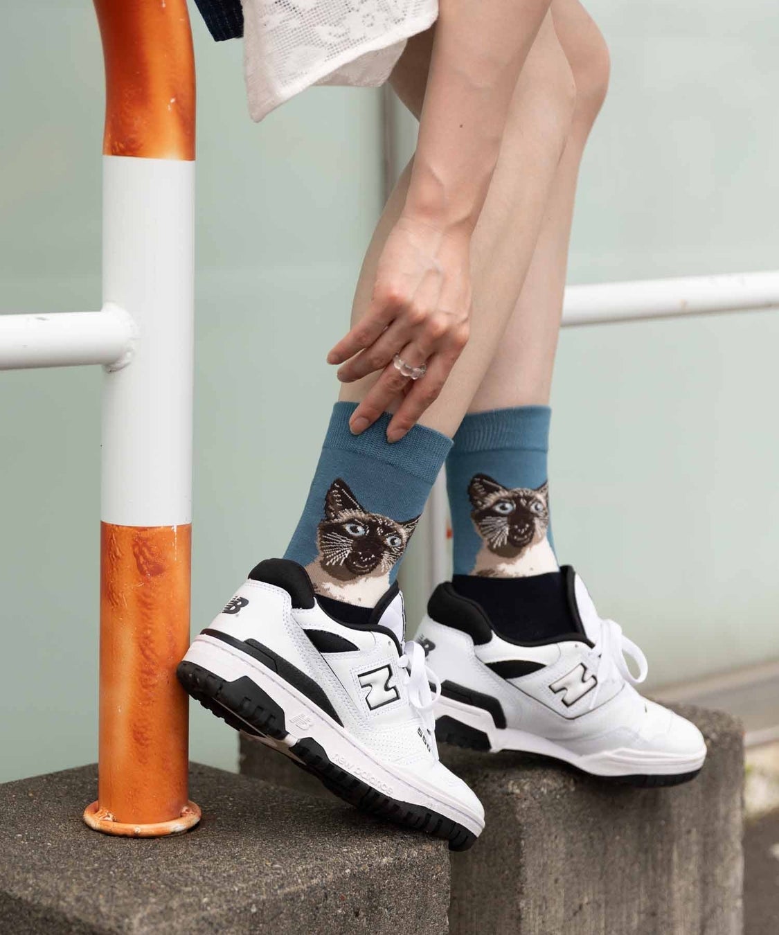 足元から覗かせると、遊び心の溢れる可愛らしい足元に。
