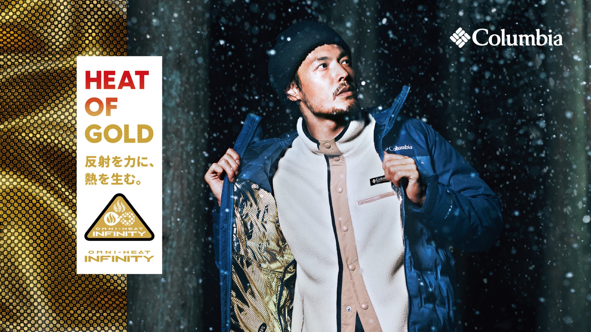 2021年にデビューしたオムニヒートインフィニティは、ジャケットにはもちろん、シューズやヘッドウェア等のアクセサリーにも搭載され、冬の日常使いからウィンターアクティビティまで快適に過ごせるコロンビア独自の熱反射保温テクノロジーです。裏地に施されたゴールドのリフレクティブドットが、身体の熱を反射してウェア内を効率的に温めつつ適度に通気することでジャケット内を快適な温度に保ちます。 2024年5月には、エベレスト登山隊のアタックウェアにも搭載し、登頂をサポートしました。